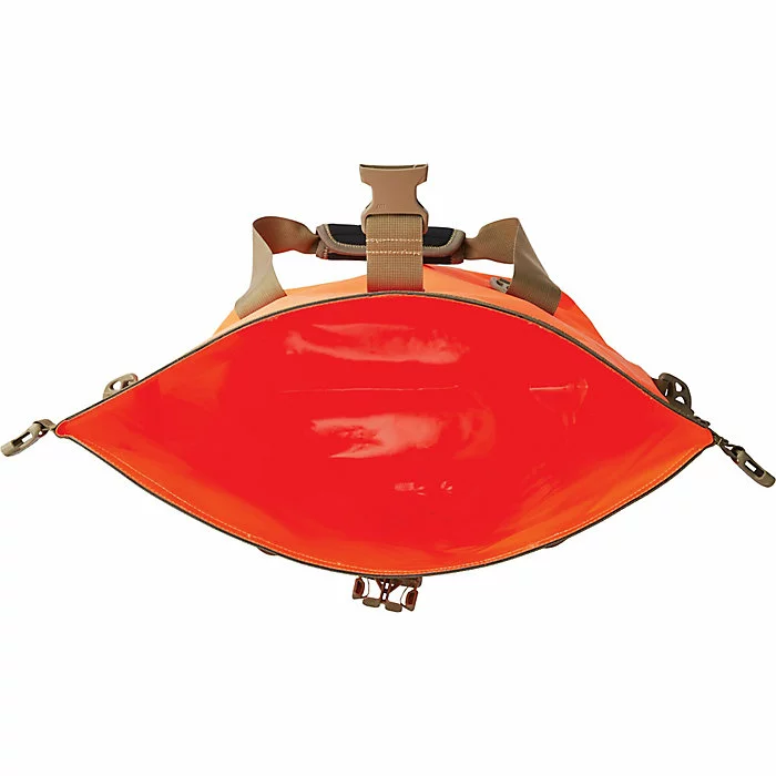 - Roll-top opening with side-buckle cinch closure prevents water entry