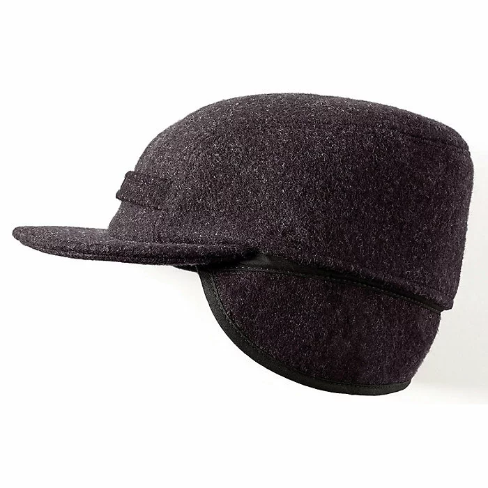 The Filson Mackinaw Cap offers the naturally water-resistant and quick-drying properties of 100% wool to keep you comfortable in cold, wet weather. The insulated crown keeps you warm, but when the wind picks up or the temperature takes a serious dive, simply pull the earflaps down for extra cozy protection.