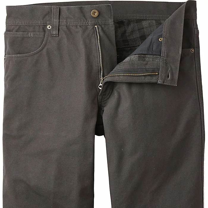 - Straight-leg dry finish tin cloth pants that are lined with filson signature alaskan guide cotton flannel