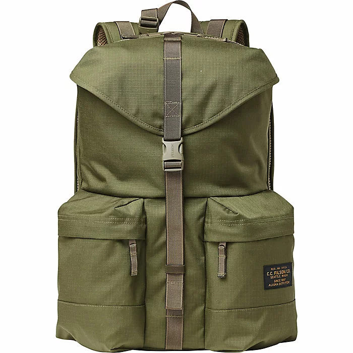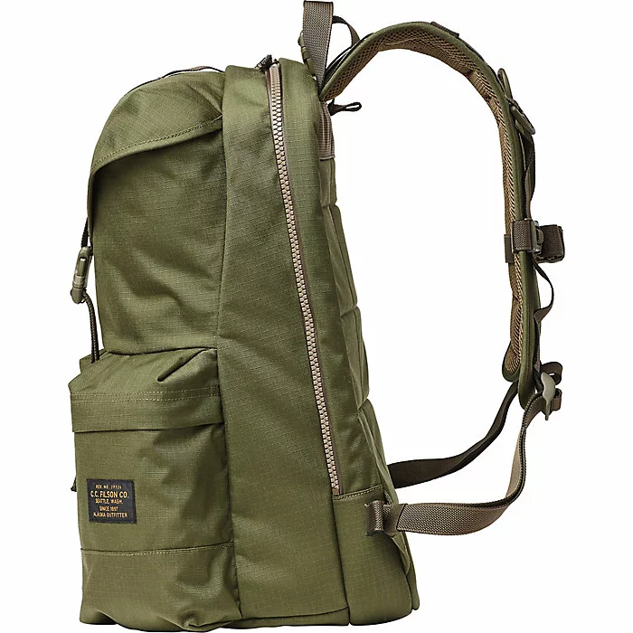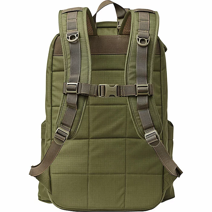 The Filson Ripstop Nylon Backpack is a tough little pack for hiking and travel. Pack up and head out the door, with the essentials in tow upon your back. Constructed from a 500D Cordura ripstop nylon fabric, it won’t add extra weight while holding up against the weather, plus the bumps and bruises of the outdoor world. Water-resistant and strong, the bag has a 24L capacity, with a padded laptop compartment for travel days. The two exterior zip pockets make an ideal spot for cords or other quick-access items like snacks. Slip the padded, ergonomic shoulder straps over your shoulders and get on with the adventure, in town or on trail.