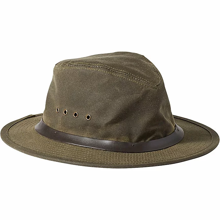 The Filson Tin Packer Hat is a tin cloth hat for everyday wear to days in the field. Pop this fedora-style hat on your head and enjoy year-round comfort. Inside, a cotton sweatband wicks away the sweat and keeps you going strong. Tip the brim and say hello, then ride (or hike) on.